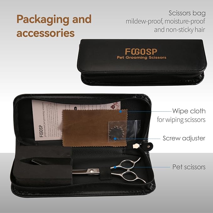 • 🌈[Professional dog grooming scissors] FOGOSP king series curved scissors is designed for groomer with heavy daily grooming work. 45 degree large arc curved shears can more efficiently trim the perfect arc effect. Greatly reduce your grooming work intensity.