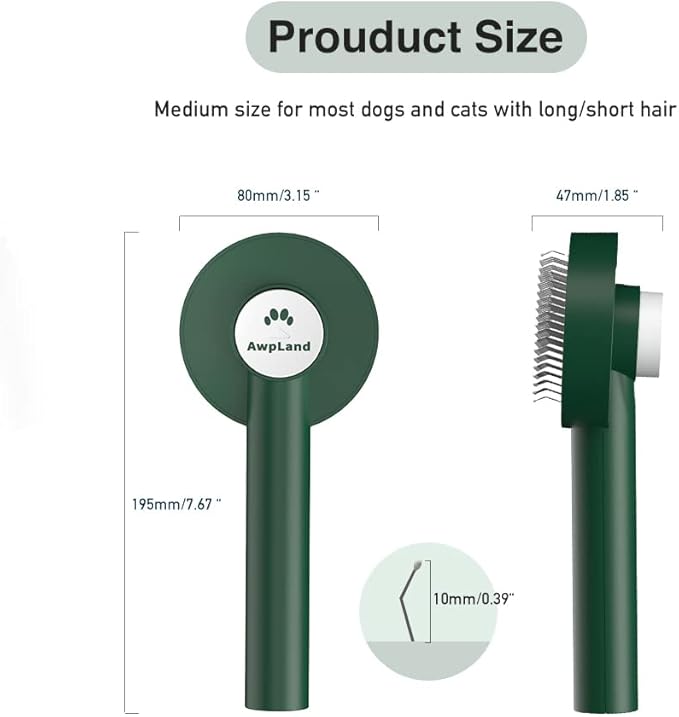 • ☘️Dog Brushes with Release Button: Awpland double coat dog brush is made with retractable bristles. When you're done brushing your pet, simply click the button and the bristles retract back into the brush, making it super simple to remove all the hair from the brush.