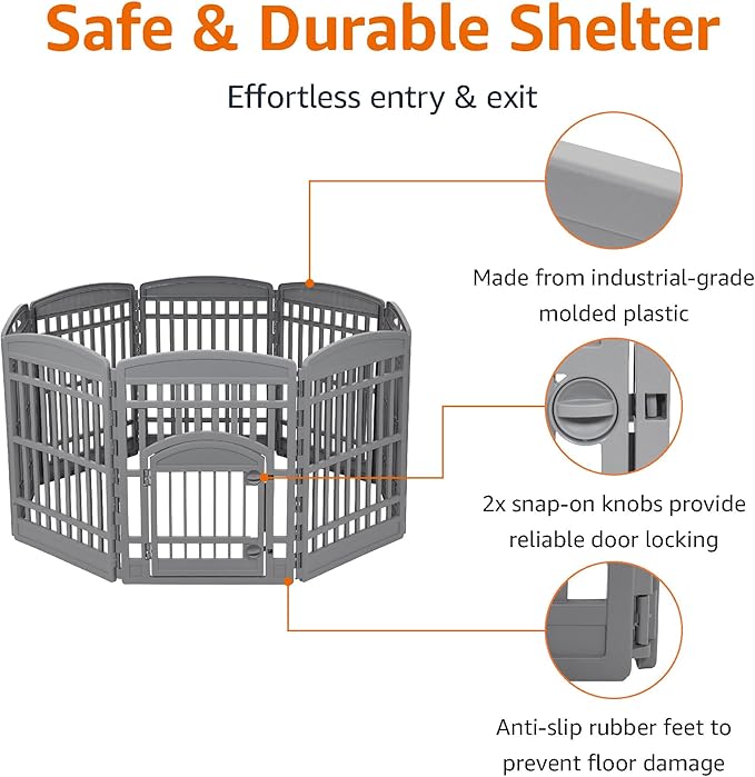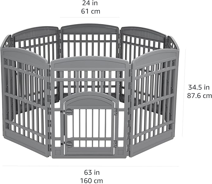 • Includes an 8 panel, dark gray, pet exercise playpen made of durable commercial-grade molded plastic