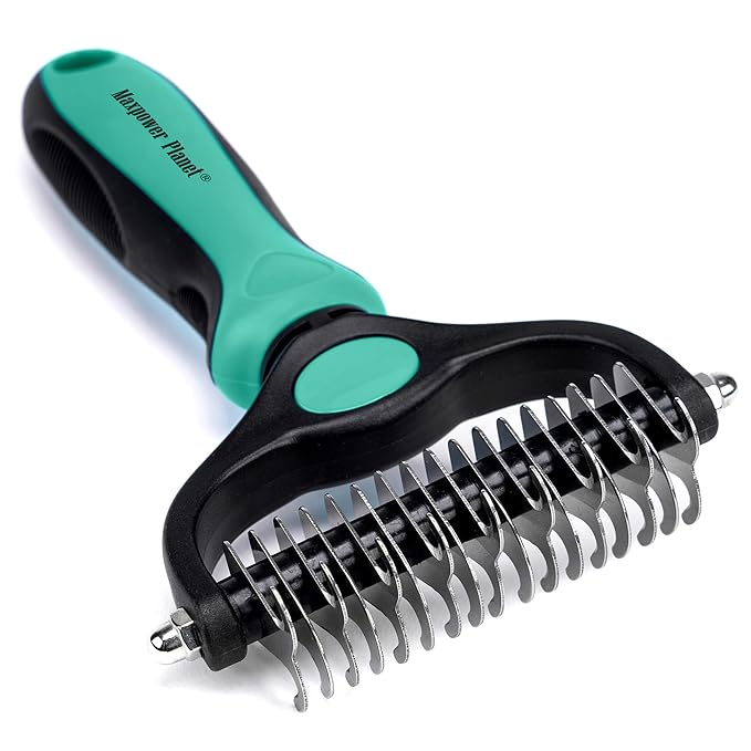Maxpower Planet Hair Brush - Double Sided Shedding, Dematting Undercoat Rake for Dogs and Cats - Extra Wide Dog Grooming Brush, Reduce Shedding by 95%, Turquoise