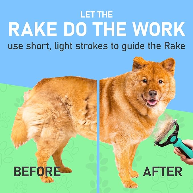 • EFFECTIVE DESHEDDING TOOL & COMFORTABLE TO USE: The perfect cat brush or dog grooming brush solution for pets with thick fur or dense double coats. This grooming rake for dogs is designed with a lightweight, comfortable, non-slip rubber handle to keep the brush from moving around as you groom your pet.