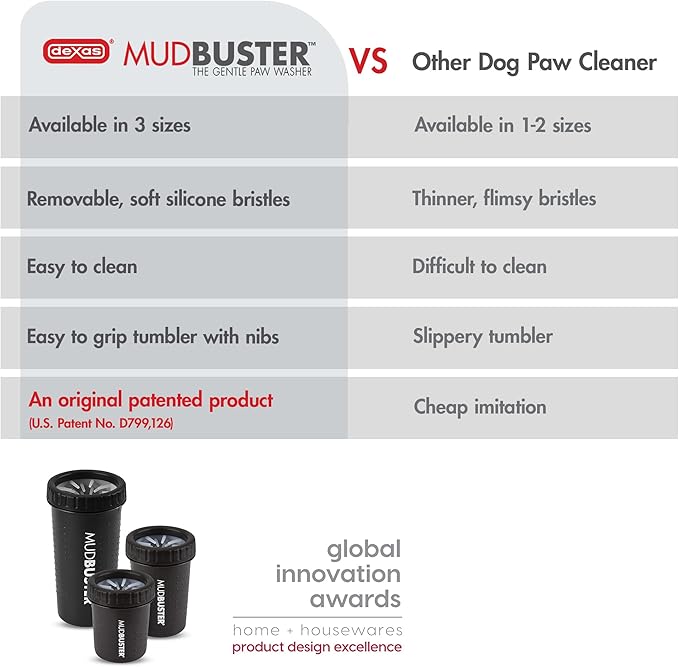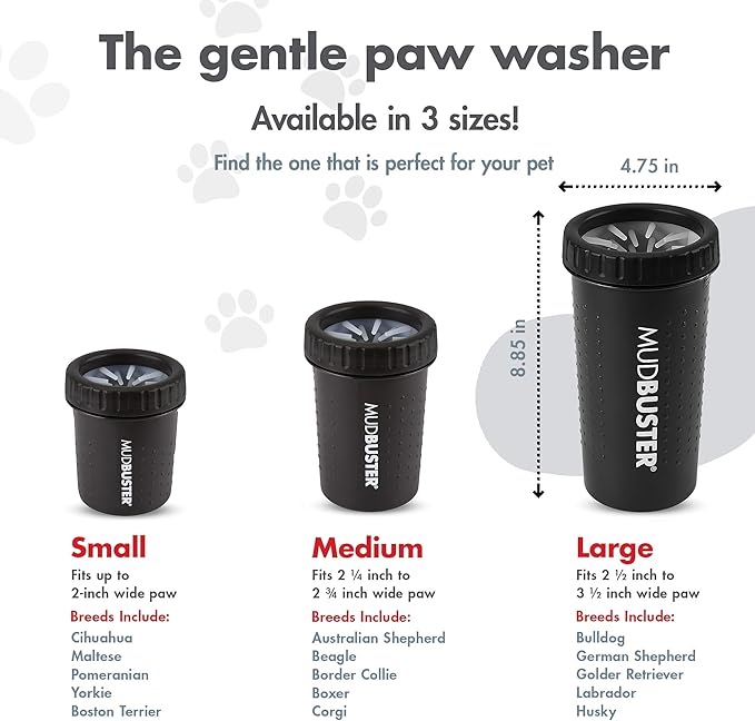 • DOG ESSENTIAL: Keep the MudBuster paw cleaner for dogs handy after trips to the park, after walks or hikes, or by your backdoor. The essential dog product you need.