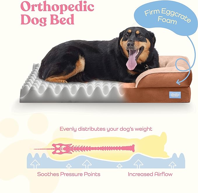• ORTHOPEDIC DOG BED: Crafted of firm eggcrate foam, this dog bed evenly distributes your dog’s weight and soothes all its joints and pressure points. The elevated cushion provides back and neck support for your doggy’s comfort.