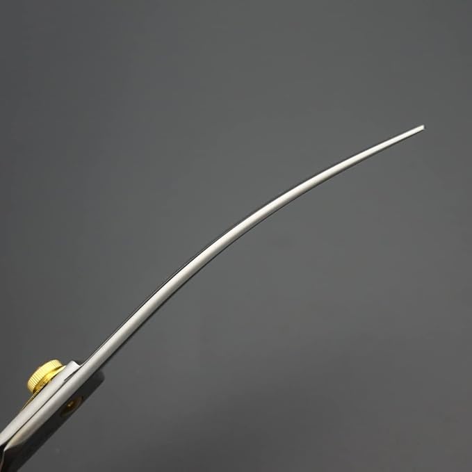 • SHARP & DURABLE EDGE. The edge line of the blade is evenly polished,which make the scissors durably sharp.With meticulously crafted clear tip of tooth ,the thinning scissors are sharp and do not clip the hair.The edge of the curved scissors is 25°-30°,majority standard angle to satisfy most part of groomers.