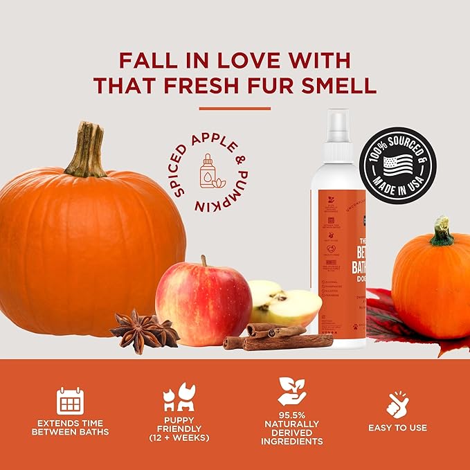 Natural Rapport Dog Cologne - Spiced Apple & Pumpkin Scent - The Only Between Bath Spray Dogs Need - Convenient, Dog Deodorant Spray and Pet Odor Eliminator Perfume (8 fl oz.)
