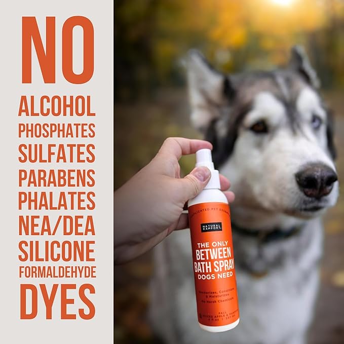 Natural Rapport Dog Cologne - Spiced Apple & Pumpkin Scent - The Only Between Bath Spray Dogs Need - Convenient, Dog Deodorant Spray and Pet Odor Eliminator Perfume (8 fl oz.)