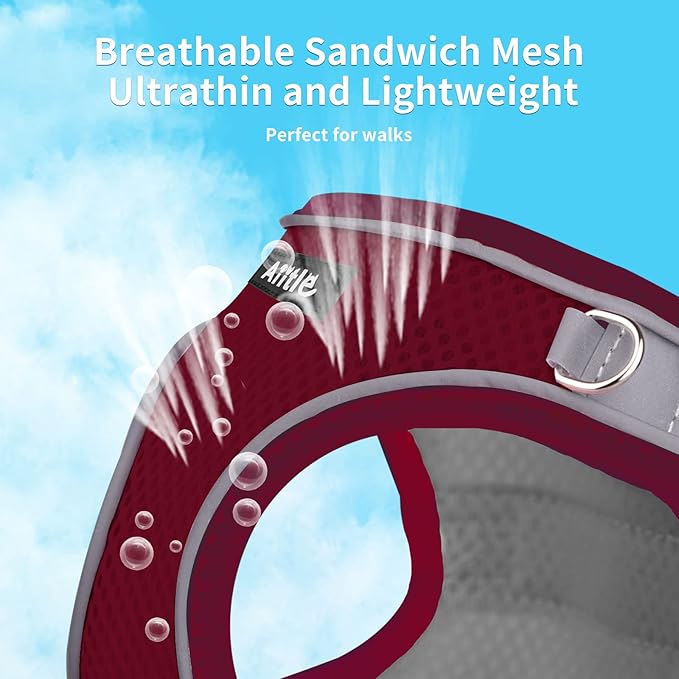 - Ultra Breathable: The step-in dog harness is made with super breathable sandwich air mesh, which is ultrathin, cooler, soft and more comfortable. The surface of sandwich mesh fabric is covered with holes, which can keep your dog dry in daily walking. So our small puppy harness is perfect for walks in any season, such as the upcoming spring, give pets an extraordinary wearing experience. Now you can have a happy walking with your pet dog!