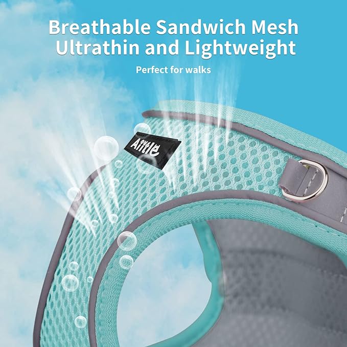 AIITLE Dog Harness, Spring No-Pull Cat Harness with a Leash, Adjustable Reflective Dog Vest, Cat Harness Escape Proof, Outdoor Walking, Camping for Extra Small Dogs and House Cats Turquoise XXXS