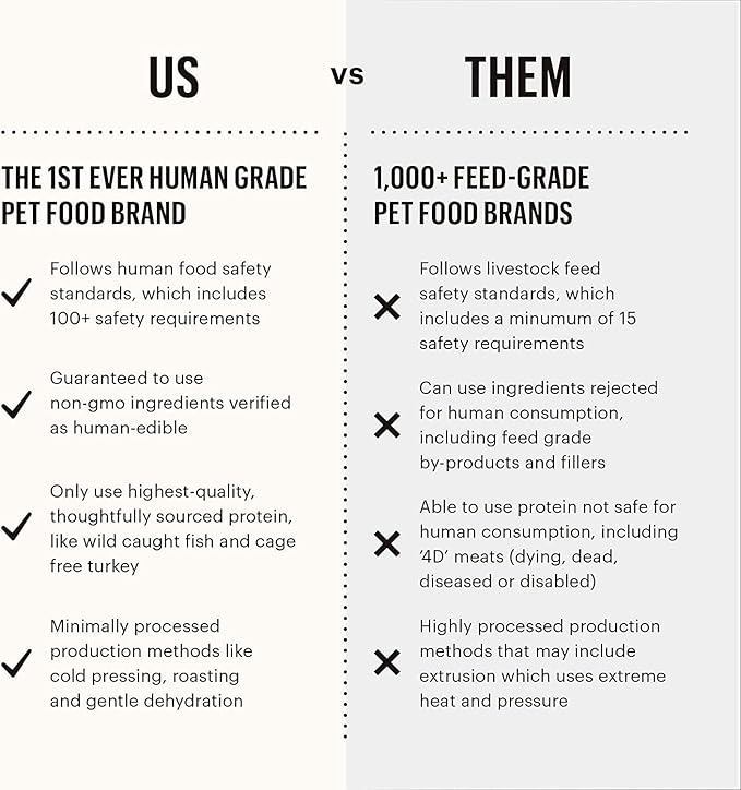 • A balanced mix of human-grade ingredients produced in a human food facility. Now your dog can eat like you!
