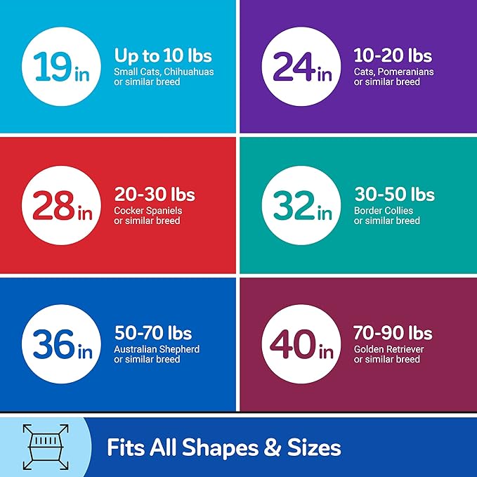 • Suitable for pets 30-50 lbs with dimensions 32" L x 22.5" W x 24" H and weight 16 lbs (Petmate Vari Kennel).