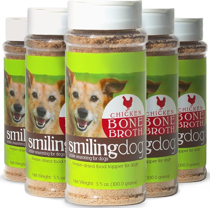 Herbsmith Bone Broth Kibble Seasoning - DIY Raw Coated Kibble Mixer - Freeze Dried Meat + Bone Broth Powder for Dogs - Chicken 3.5 oz [Bundle x5 Units]