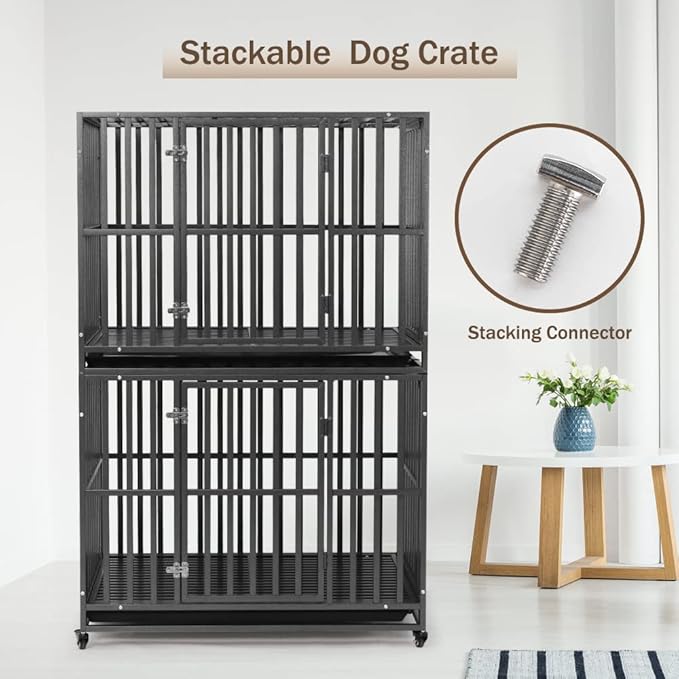 • Stackable Dog Crate: Our pet crate has a stackable design. If you have more than one large dog kennel, you can stack them to save more space. Note: Only dog cages of the same model can be stacked