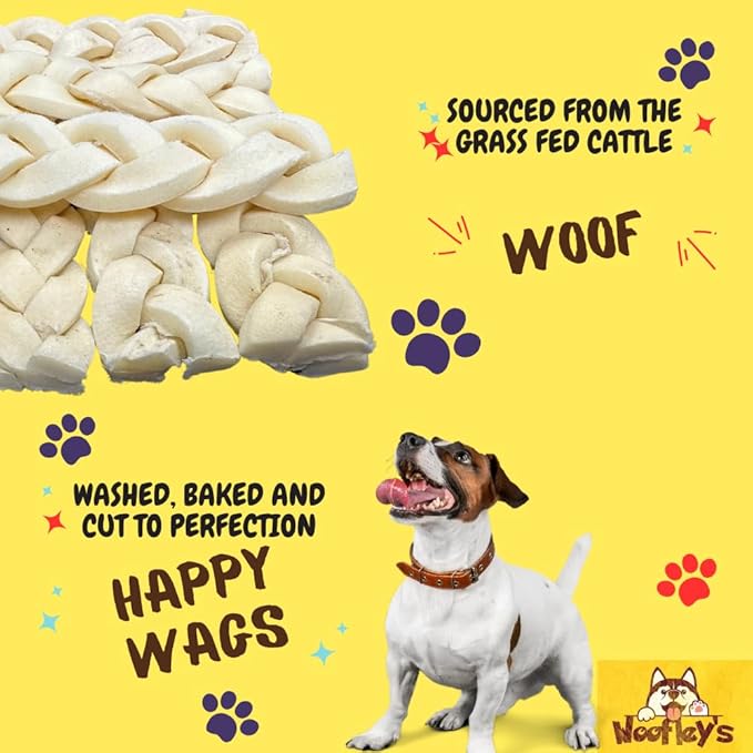 Woofley's 6" Buffalo Beef Cheek Braids Regular - (20 Count)- Beef Cheek Dog Chews - No Hide Bones for Dogs