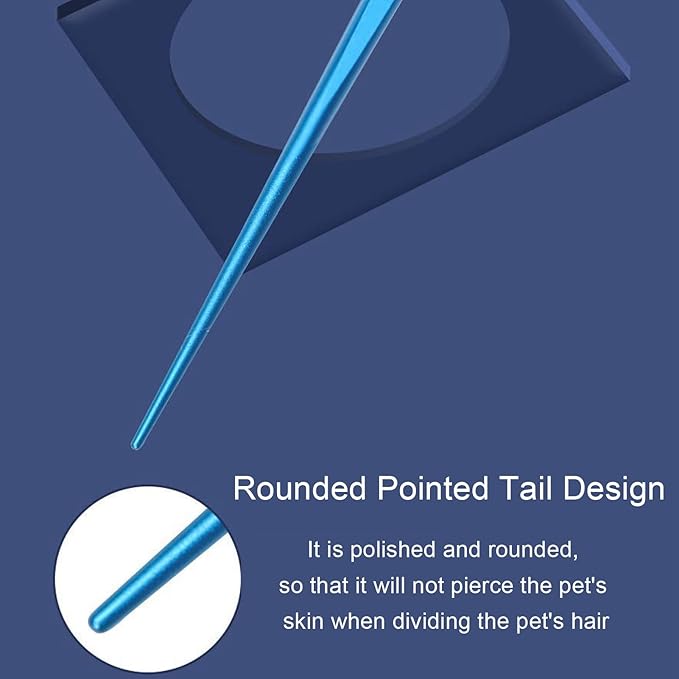 • 【Pointed tail design】 round pointed tail design The pointed tail of the pet boundary comb is polished to be round, so that it will not pierce the pet skin when distributing hair to the pet