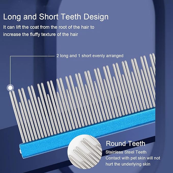 Round tooth metal dog comb is used for pet hair comb of dogs and cats to remove hair knots and entanglement. Professional pet hair comb styling comb(blue)