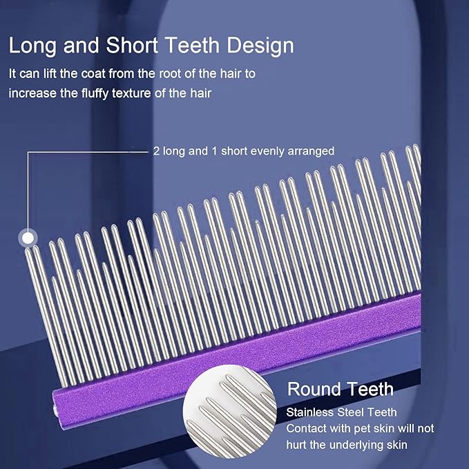 • 【Material】 High quality static free stainless steel teeth are strong and enough to prevent deformation and effectively prevent static electricity generated when dogs comb