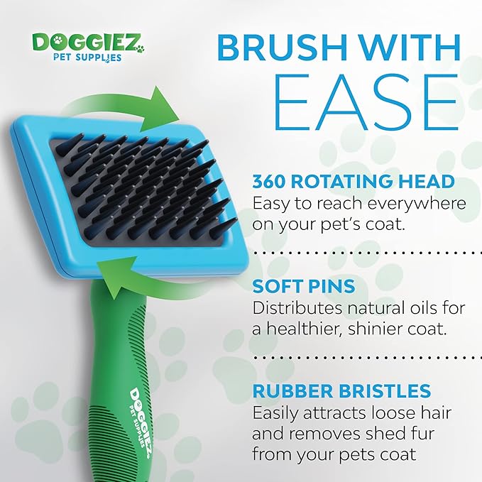 • 360 DEGREE HEAD - In addition to flexible bristle tips, this handheld pet brush features a large 360 swivel to help you pet, comb and massage your dog, cat, puppy, kitten, rabbit, horse or other animal all over their head and body.