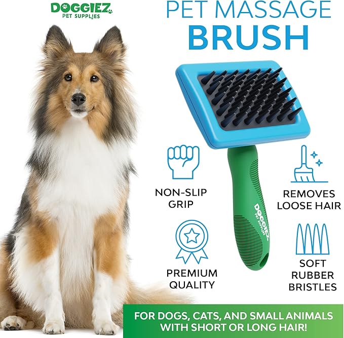 • SOOTHING BRUSH - The soft silicone rubber bristles are great for massaging your furry friend before, during or after bath and shower time. Each grooming brush tip gently massages your dog or cat while picking up dead and shedding hair to leave them looking and feeling amazing.