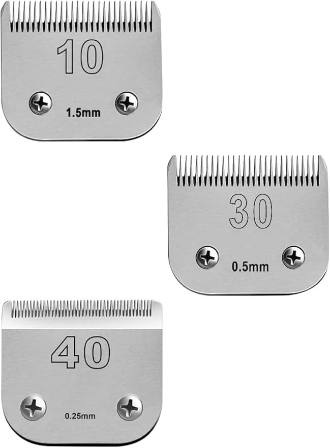 Size 10/30/40 Detachable Pet Dog Grooming Ceramic Blades Compatible with Oster A5,Wahl KM10 Series Clipper,Cut Length 1/100 to 1/50 to 1/16 in, (10+30+40(3 Count))