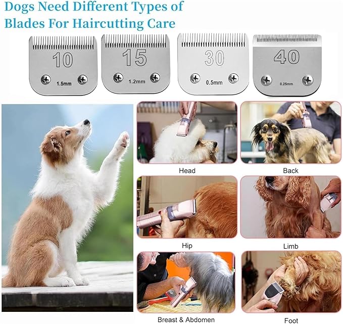 • SIZE】:10# blade (Cutting length 1.5mm/1/16”) and 30#Detachable Dog blade (Cutting length 0.5mm/1/50”): commonly used pet blade in summer  40# dog blade Cutting length 1/100”(0.25mm)