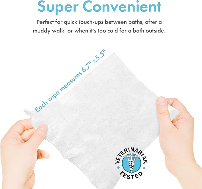 • Gentle For Your Furry Friend - The 6.7 x 5.5" inch wipes keep your pet's coat soft, shiny and smelling great. No parabens or sulfates. Veterinarian tested for daily use. Contains natural ingredients.