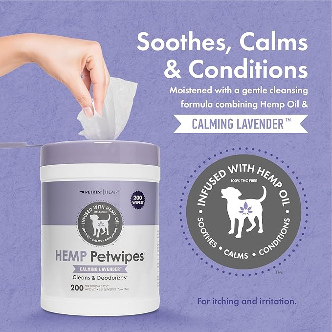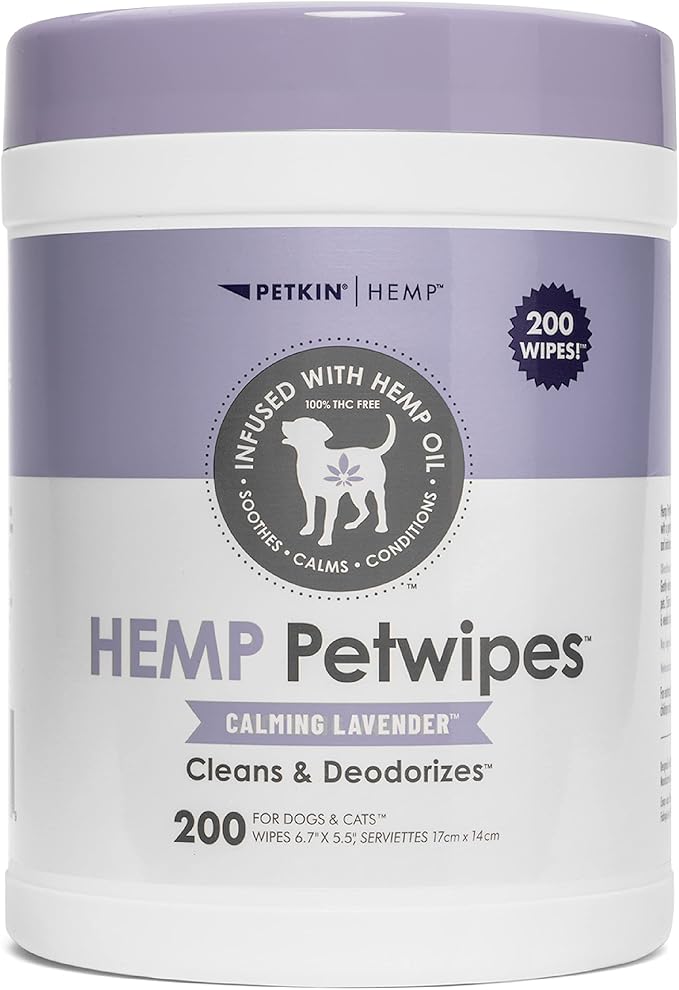 • Petkin Pet Wipes For Dogs and Cats - Our Hemp grooming wipes are a fast, convenient way to keep your pet clean and healthy every day. These calming dog wipes are extra gentle and ideal for daily use around your pet's eyes, ears, face, body and butt. Includes 200 wipes.