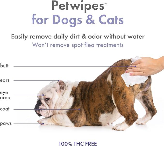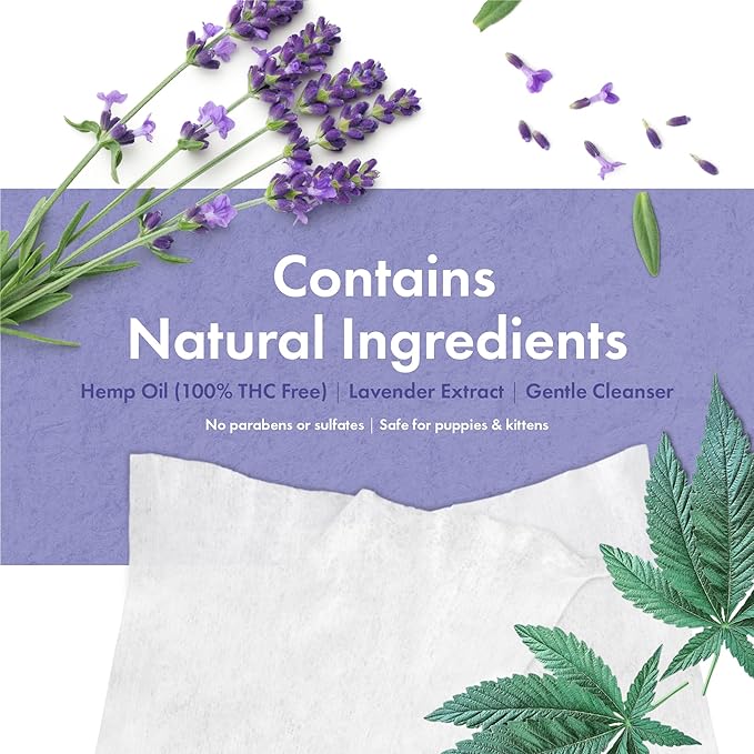• Soothes, Calms & Conditions - Each wipe is moistened with a gentle cleansing formula combining Hemp Oil and calming lavender extract to clean, condition and soothe itching and irritation. Won't remove spot flea treatments. 100% THC free.