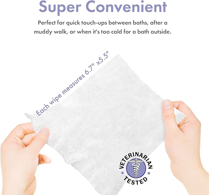 • Gentle For Your Furry Friend - The 6.7 x 5.5" inch wipes keep your pet's coat soft, shiny and smelling great. No parabens or sulfates. Veterinarian tested for daily use. Contains natural ingredients.