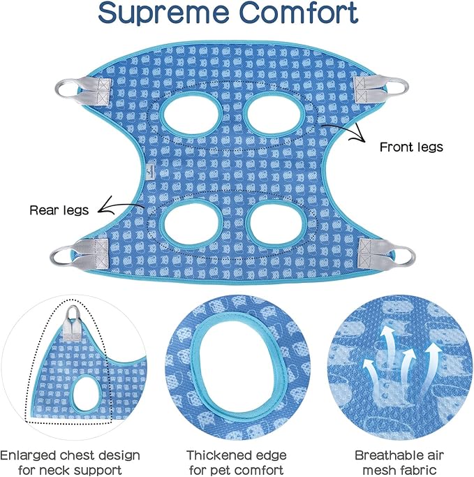 • Comfortable Fabric: The dog hammock for grooming is made of premium air mesh fabric for excellent breathability, brings your pets comfortable feeling during their grooming or trimming time.