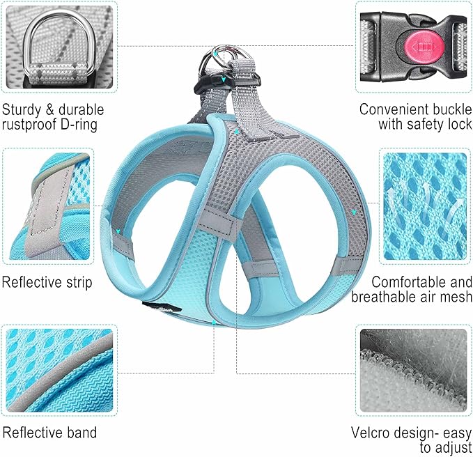 • 【 AIR MESH 】- Dog harness is made of durable thickened air mesh that featured with breathable, lightweight, comfortable, and quick-dry