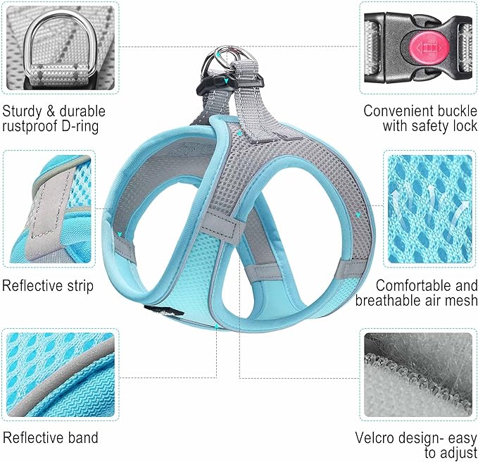 • 【 AIR MESH 】- Dog harness is made of durable thickened air mesh that featured with breathable, lightweight, comfortable, and quick-dry