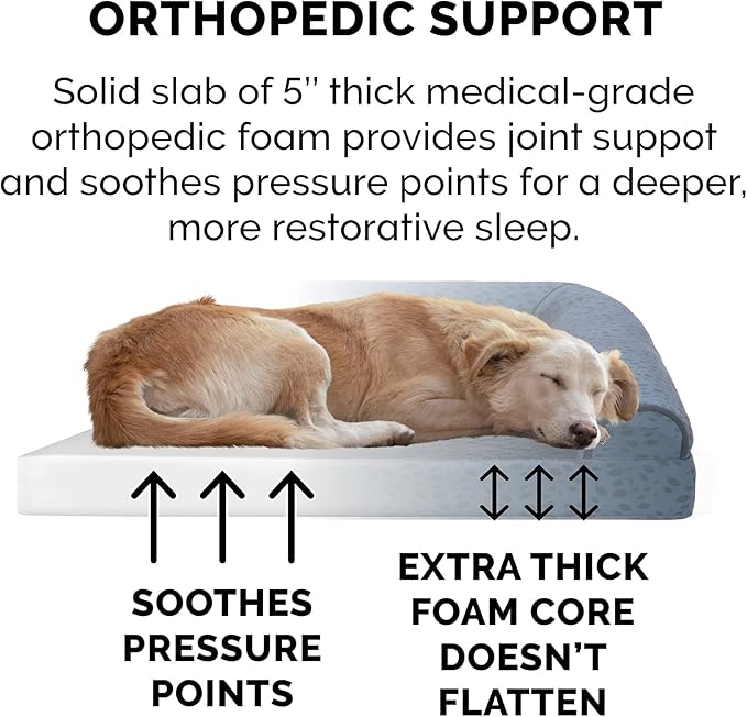 • EASY ON JOINTS: The dense and sturdy solid orthopedic foam base provides superior comfort and greater support for dog breeds of all sizes; fluff-filled bolsters support the neck, back, hips, and joints to help ease discomfort and promote restful sleep