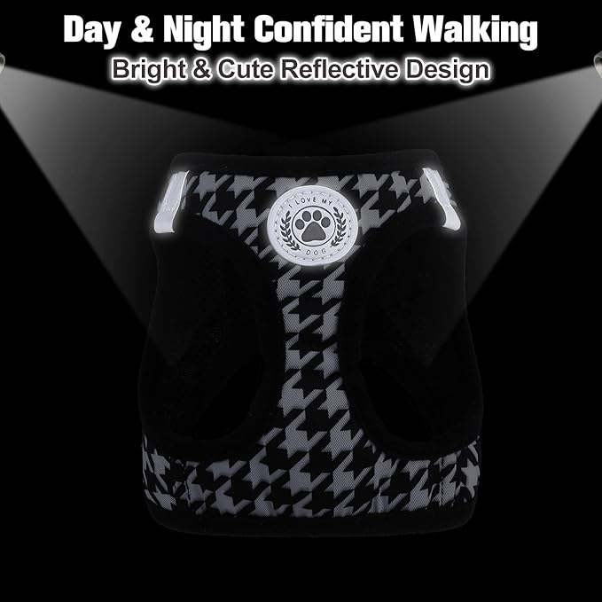 - 🐶Comfortable and Reflective ---Adjustable dog harness features colorful plaid and breathable mesh fabric, comfortable to wear and will not stick to the dog's hair. Reflective strips deign reflect ambient light in low light conditions, making you and your dog safer when walking and moving around at night without worrying about blurred vision in the dark.