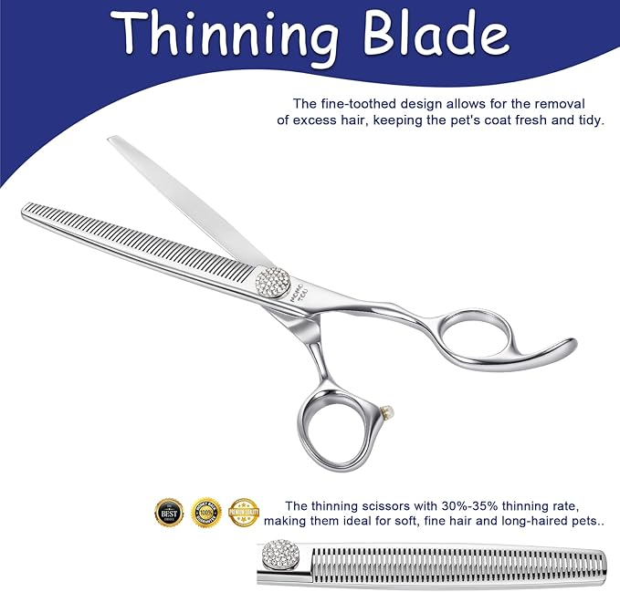 • Quality: Our scissors are forged by hand by experienced craftsmen and are polished with a high-precision water grinder. This makes these scissors very sharp and durable. They are perfect for novice groomers and pet groomers. These scissors are also very cost-effective. It can meet the needs of most people.