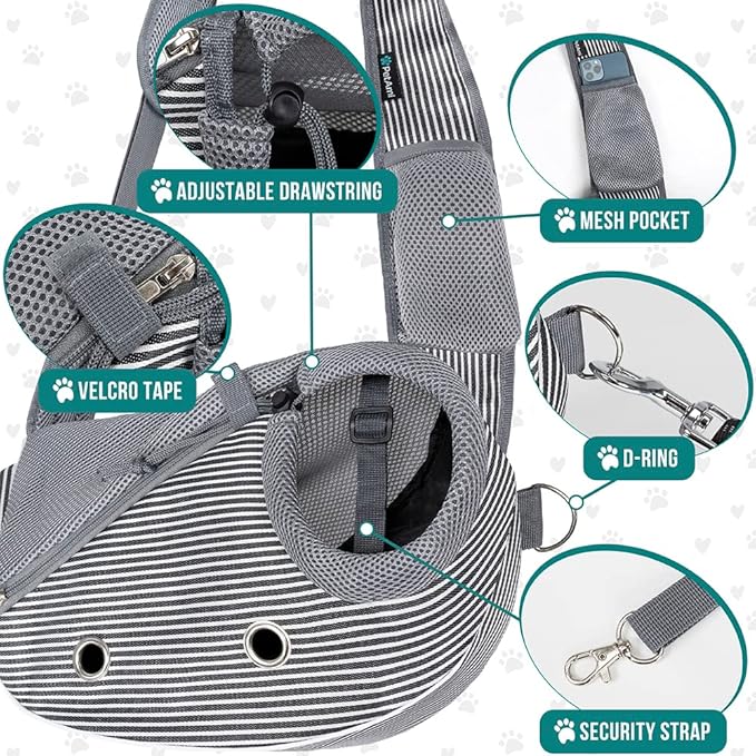 PetAmi Dog Sling Carrier for Small Dogs, Puppy Carrier Sling Purse, Dog Bags For Traveling, Carrying Bag to Wear Medium Cat, Adjustable Crossbody Pet Travel Poop Bag Dispenser, Max 10lbs, Stripe Black