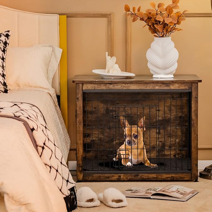 • 【Impressive Versatility:】Industrial furniture style makes the dog crate blend perfectly in different home decors, such as living room, bedroom or study room, while it plays different roles in different places. It is feasible for you to use it as a dog house, a side table or a nightstand.
