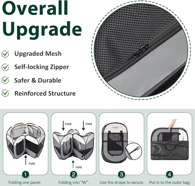 • No Assembly Required and Easy to Store: The Portable Pet Play Pen comes along with a convenient carrying case that can easily store your playpen. It takes seconds to open the dog playpen from folded storage bag, no assembly required. And it's also easy to fold back flat when not in use. Our lightweight portable pet playpen can be used indoors, outdoors, traveling, camping, etc.