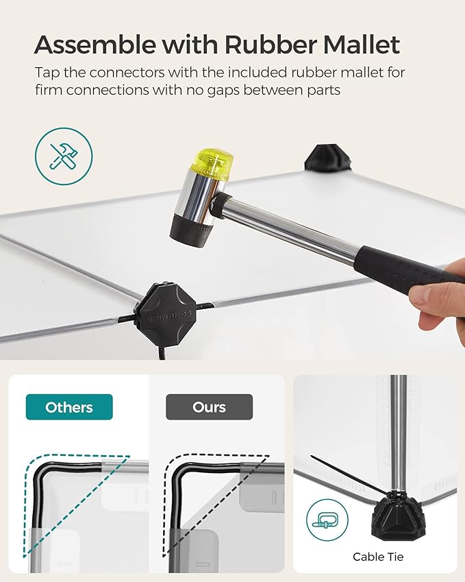 • [Assembly Is a Breeze] Simply join the plastic panels with the multi-angle connectors with the help of the included rubber mallet, you’ll quickly set up this pet playpen. The modular, lightweight structure also makes it easy to disassemble or move around