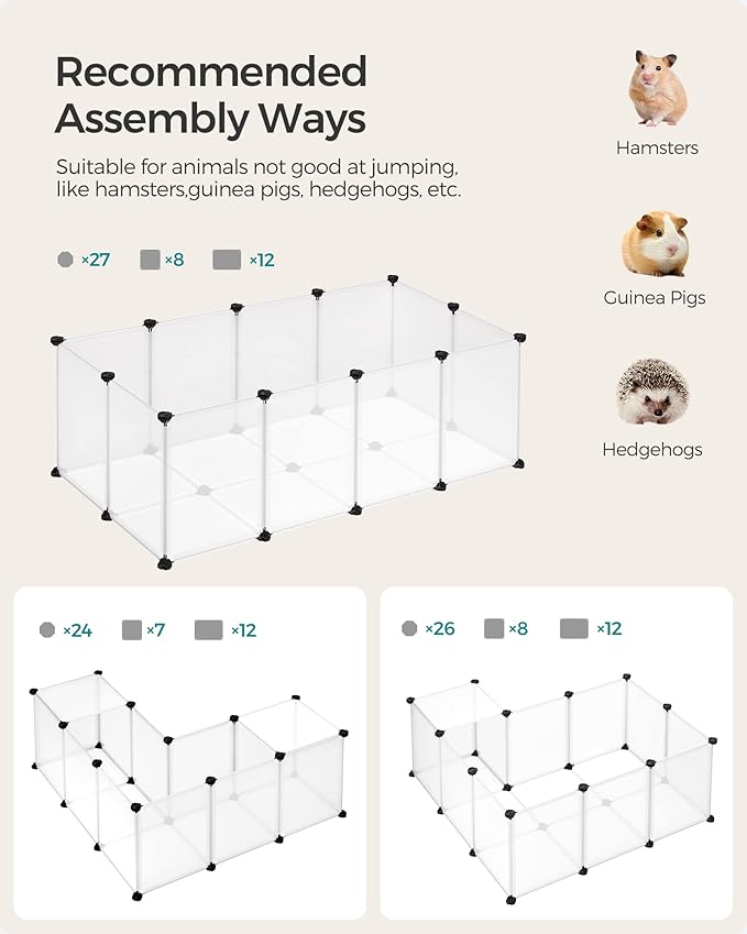 • [Customizable and Expandable] Arrange this flexible pen in an L-shape to fit your corner space or stack them into a 2-story pet house within the limit of the included parts. Please see the recommended assembly methods below for further details
