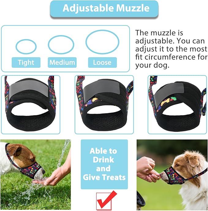 • Better Socialization-Different from the traditional heavy muzzles, our funny printed muzzle for dogs reduces people's/dogs' fear when they are meeting your fur baby. It will make your dogs appear more approachable and friendly in public when wearing this muzzle for dogs.
