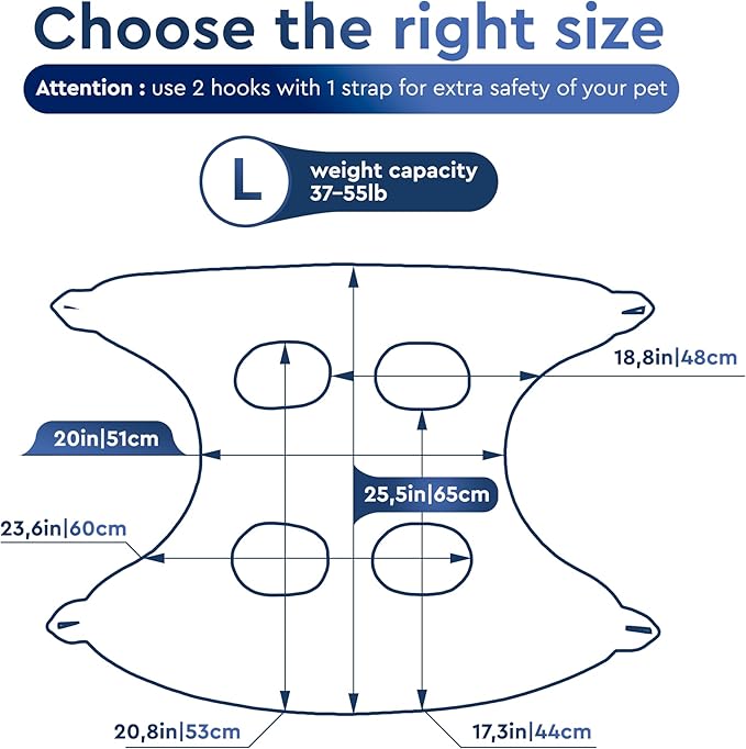 • Satisfaction Guaranteed - Please consult our size chart before purchasing to find the perfect fit for your dog. If you have any questions about our pet grooming hammock, don't hesitate to reach out