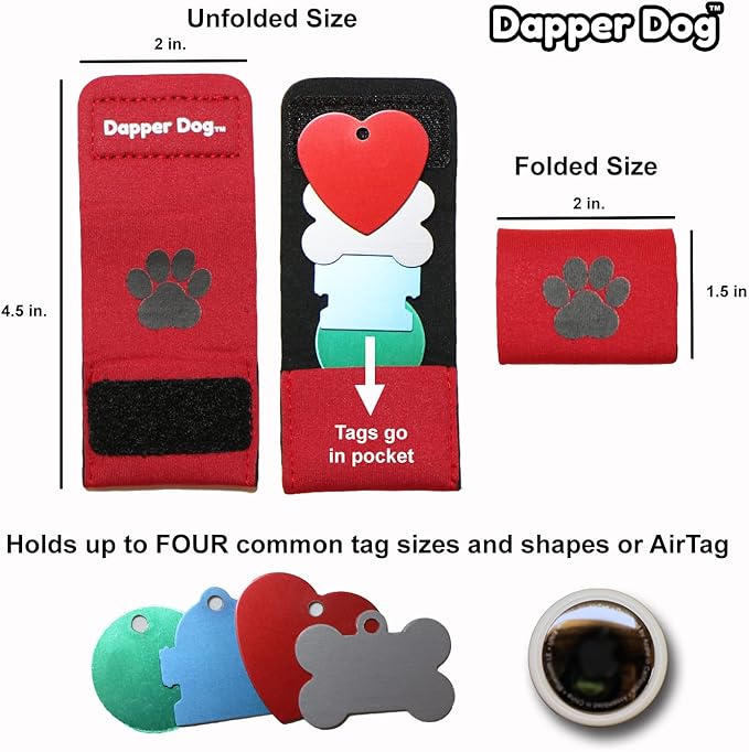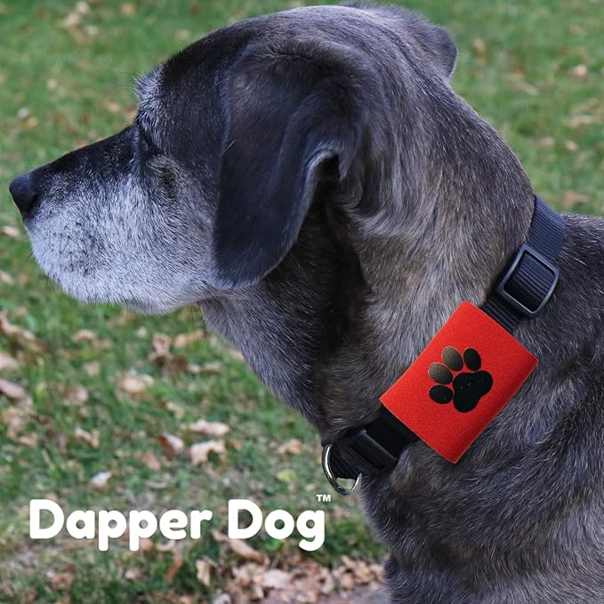 Dapper Dog Pet Tag Silencer and AirTag Holder (Red with Black Paw)