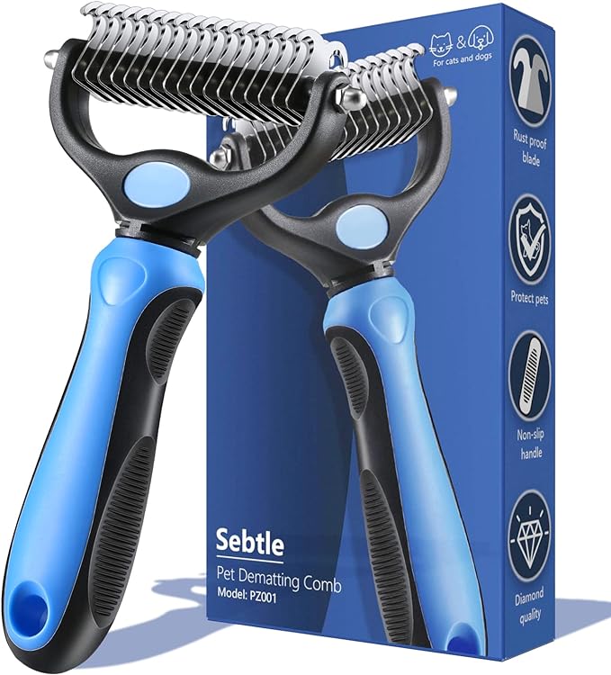 • Dual-Sided Rake Comb: Easy to start with 9 teeth side to smoothly cut the stubborn mats, tangles and knots, then finish with 17 teeth side for thinning and deshedding. Works great for both dematting and grooming