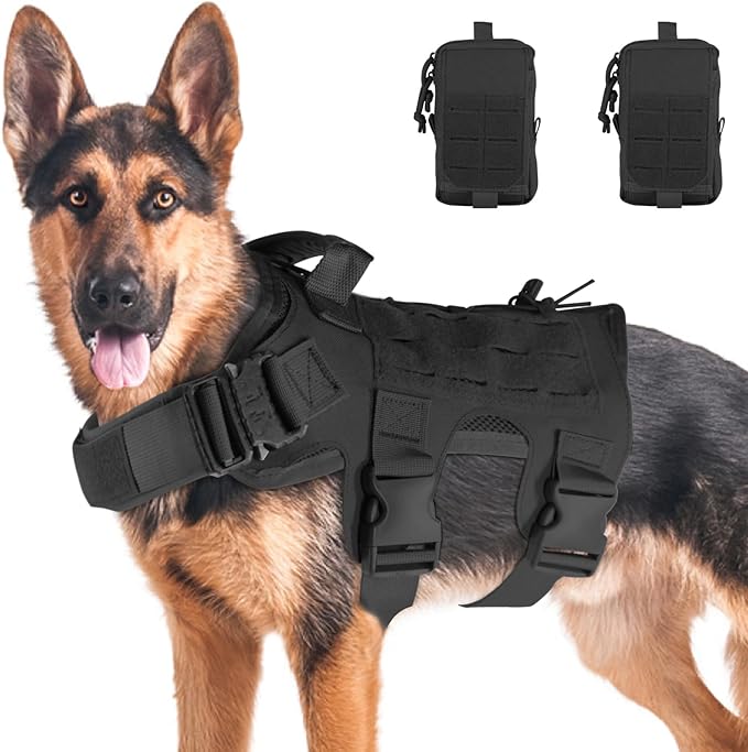 • [Adjustable with 2 metal buckles] 2 metal buckles and 2 plastic buckles make it easy to wear and take off tactical dog Harness. Each strap can be adjusted. Please adjust each belt until it fits comfortably with your dog. This way, even if you play all day, it will last all day.