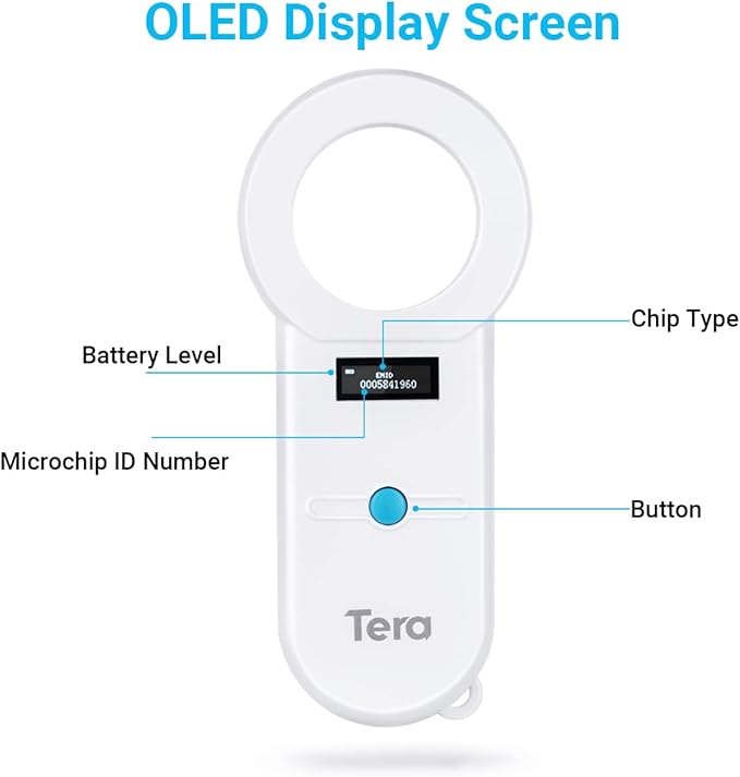 • 【OLED Display Screen】 Tera handheld pet reader adopts high brightness OLED display, which can be clearly displayed under indoor or outdoor strong light/light conditions.