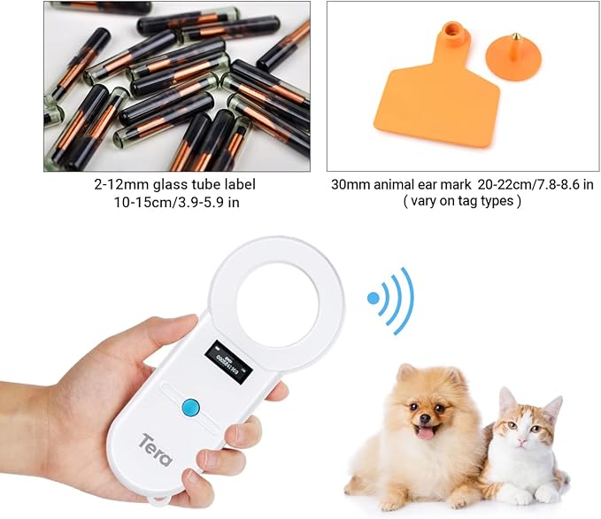 • 【Sufficient Data Storage Capacity】 Tera Pet Scanner has extremely fast scanning speed and can save up to 30 tags information. Note: the USB cable only for charging, not transfer data.