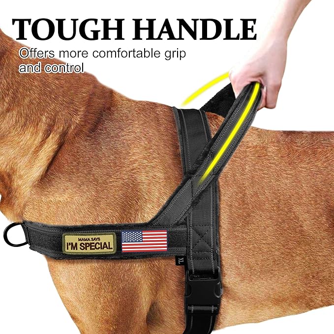 • [Comfortable Flannel Padded] The dog tactical harness padded with soft flannel,make sure very comfortable wearing and touching for both dog skin and people hands when using the handle on the back;