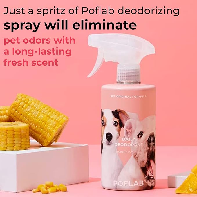 • Effective odor neutralizer: Our pet deodorant contains corn starch infused with cyclodextrin, a powerful odor neutralizer that works by trapping and removing odor particles completely and safely. This advanced formula helps to eliminate unpleasant odors, rather than just masking them, leaving your pet's coat smelling clean and fresh.