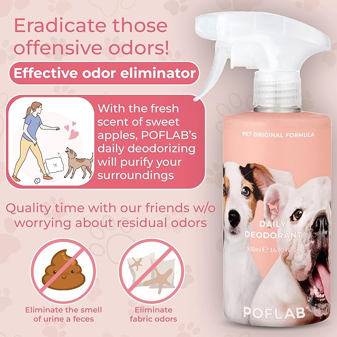 • Delightful scent: Our pet deodorizer spray has a refreshing scent that combines a crisp apple base with a subtle floral fragrance. This delightful aroma will keep your furry friend smelling clean and fresh for hours on end without overwhelming their sensitive nose.