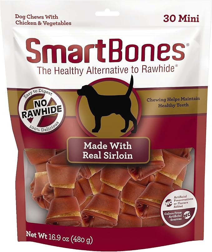 SmartBones Real Sirloin Mini Chews, 30 Count (Pack of 1)